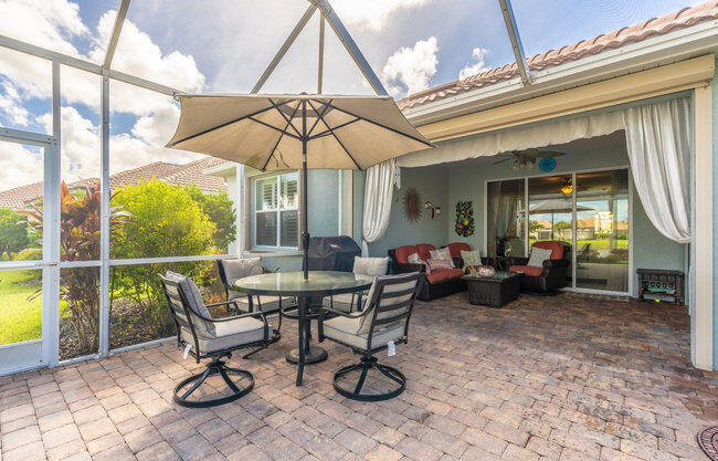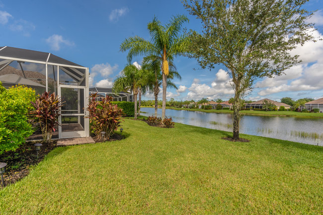 | Awaiting new owners is this spacious, three bedrooms with den/two bath, Vernon Hill single family home located within the gated, VeronaWalk community in bustling East Naples. The exterior is freshly painted in a coastal hue that blends harmoniously with the interior. A contemporary, open concept floorplan is an entertainer’s dream. No carpet in sight, as the entire home has tile throughout. Your kitchen, at the center of activity, boasts stainless appliances, granite counters and a breakfast bar for a quick snack. There is also an eating nook and formal dining area to expand dining options. A full laundry room has a wash sink and plentiful storage. Two guest bedrooms that share a bath are located away from the owner’s suite allowing for a retreat from overnight visitors. The primary ensuite has dual vanities, a deep soaker tub, a separate tiled shower and private water closet. An expansive walk-in closet complete with built-ins allows for effortless daily prep. Always storm ready, this home has accordion shutters and an electric version on the lanai. A covered, paver lanai opens to a screen enclosed patio with mature foliage for privacy. Relax and refresh with a morning coffee or evening cocktail as you enjoy your water view. |